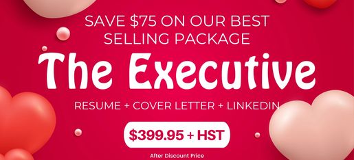 Save $75 on our most popular pairing of Resume, Cover Letter, and LinkedIn profile (our Executive package), available for $399.95 this month after the discount.