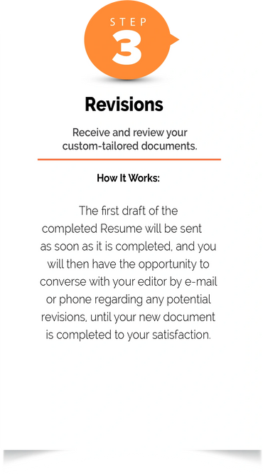 The Process: our Cover Letter service follows the same process, individual document timeline, and revision procedure as our Resume Writing Service (see "Process" above in the Resume section). Work on Cover Letter service begins the next business day after documents and payment are received. If ordered as part of a package, work on Cover Letter service begins after the Resume has been completed, and follows the same standard individual document timeline as the Resume Service.